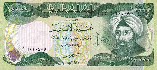 Irački dinar (IQD), dijeli se na 1000 filsa. 1 USD = 1500 IQD, 1 EUR = 1424.08 IQD (lipanj 2024.)